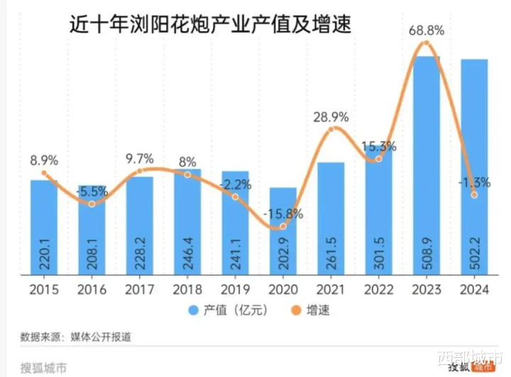 如跟着环保政策收紧,禁放地区增加,2012年至2022年十年间,浏阳烟花总产值仅从277.5亿元微升至301.5亿元,复合年均增速不到1%。