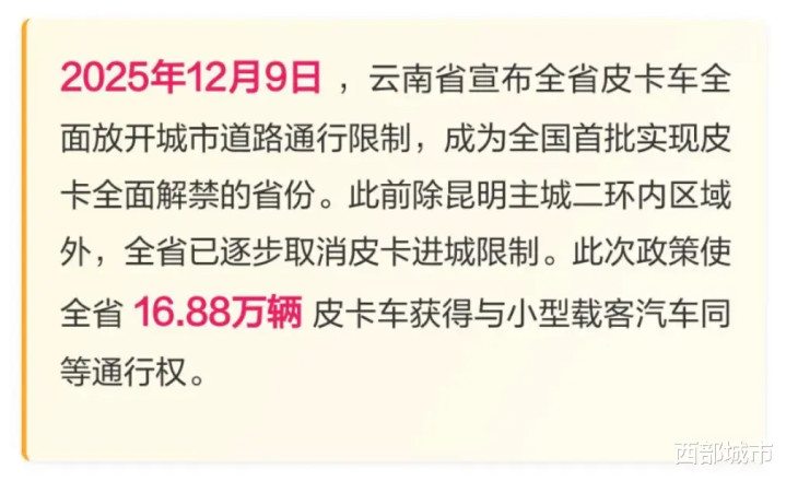 雷同的逻辑也不错用来诠释注解云南对皮卡进城的“松捆”。