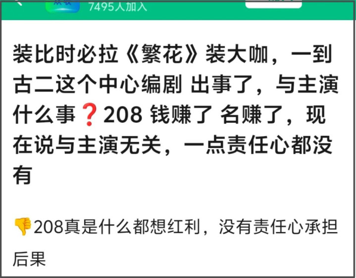 许多网友都喊话他们别再跟《似锦》剧组扯上关连,免得被编剧的晦气风评给触及了。