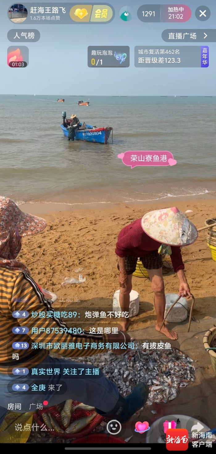 “阿飞,又来帮咱们带货啦!”相熟的渔民笑着呼叫。荣山寮的鱼市本就不固定,渔民靠洋流与特制漏斗网哺育,得益全看潮汐表情。吴尹泽在海口念书频频来村里玩,深知渔民“丰产不丰充”的窘境——往时渔获要挑到集市等鱼贩,压价是常事。他试着用直播帮渔民拓销路,沙滩鱼市的特质也为直播引诱来不雅众。如今,“赶海王路飞”已有8.9万粉丝,一年直播超180场,春节期间直播间及时在线东谈主数以致达数万。