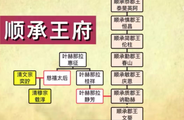 访谈中给出的谱系直爽是: … 泰斐英阿(顺承恭郡王) → 恒昌(顺承慎郡王) → 伦柱(顺承简郡王) → 春山(顺承勤郡王) → 庆恩(顺承敏郡王) → 讷勒赫(顺承质郡王)。